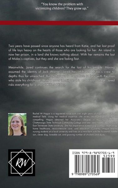 Two years have passed since anyone has heard from Katie, and her last proof of life lays heavy on the hearts of those who are looking for her. An island is now her prison, in a land she knows nothing about. With her remains the last of Midas's captives, but they and she are fading fast. Meanwhile, Jared continues the search for the last of his people. Having assumed the identity of Jack Warner, Jared has infiltrated Midas's crew to depths thus far unreached. But he has yet to come face to face with the man who stole his childhood. With a cover identity as thin as a razor's edge, Jared risks everything for a shot at Killing Midas.