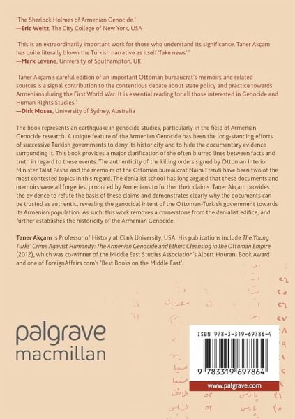 The book represents an earthquake in genocide studies, particularly in the field of Armenian Genocide research. A unique feature of the Armenian Genocide has been the long-standing efforts of successive Turkish governments to deny its historicity and to hide the documentary evidencesurrounding it. This book provides a major clarification of the often blurred lines between facts and truth in regard to these events. The authenticity of the killing orders signed by Ottoman Interior Minister Talat Pasha and the memoirs of the Ottoman bureaucrat Naim Efendi have been two of the most contested topics in this regard. The denialist school has long argued that these documents and memoirs were all forgeries, produced by Armenians to further their claims. Taner Akçam provides the evidence to refute the basis of these claims and demonstrates clearly why the documents can be trusted as authentic, revealing the genocidal intent of the Ottoman-Turkish government towards its Armenian population.As such, this work removes a cornerstone from the denialist edifice, and further establishes the historicity of the Armenian Genocide.