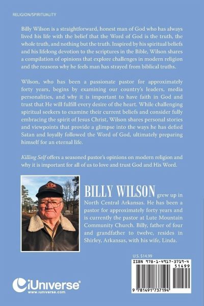 Billy Wilson is a straightforward, honest man of God who has always lived his life with the belief that the Word of God is the truth, the whole truth, and nothing but the truth. Inspired by his spiritual beliefs and his lifelong devotion to the scriptures in the Bible, Wilson shares a compilation of opinions that explore challenges in modern religion and the reasons why he feels man has strayed from biblical truths. Wilson, who has been a passionate pastor for approximately forty years, begins by examining our country?s leaders, media personalities, and why it is important to have faith in God and trust that He will fulfill every desire of the heart. While challenging spiritual seekers to examine their current beliefs and consider fully embracing the spirit of Jesus Christ, Wilson shares personal stories and viewpoints that provide a glimpse into the ways he has defied Satan and loyally followed the Word of God, ultimately preparing himself for an eternal life. Killing Self offers a seasoned pastor?s opinions on modern religion and why it is important for all of us to love and trust God and His Word.