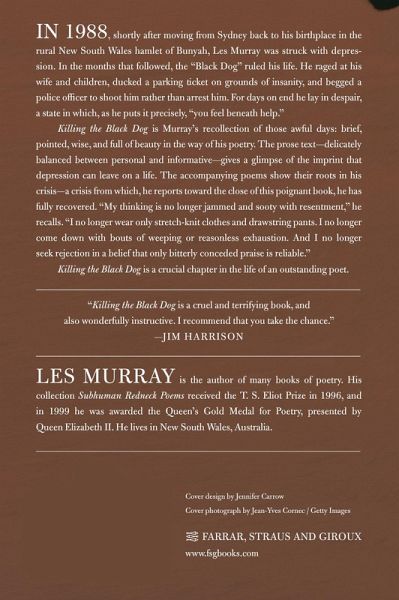 Der Schwarze Hund ist ein mutiger und schonungsloser Essay über Les Murrays Kampf gegen die Depression, mit Gedichten, die der Autor aus dieser Krise heraus schrieb und seinem Essay beigegeben hat, um das Zusammenspiel von Reflexion und schöpferischem Ausdruck zu erhellen. Seit seiner Veröffentlichung im Jahre 1997 wurde das Buch um ein Nachwort und mehrere Gedichte erweitert. Auch für die deutsche Ausgabe hat Les Murray die Auswahl leicht verändert. Der Autor beschreibt, wie seine Familiengeschichte, seine Erfahrungen mit Mobbing und sein Asperger-Syndrom in einem Zusammenbruch mündeten, und wie er die Kraft fand, aus diesem inneren Dunkel heraus Gedichte zu schreiben und zugleich mit Medikamenten und Gedanken gegen es anzukämpfen. Mit der Zeit überfiel der Schwarze Hund ihn immer seltener und weniger heftig. Kein Buch des Australiers hat mehr Leser gefunden, vielleicht, weil selten ein Mensch offener zeigte, wie zerstörerisch dieses Leiden sein kann und welche Wege aus ihm herausführen.