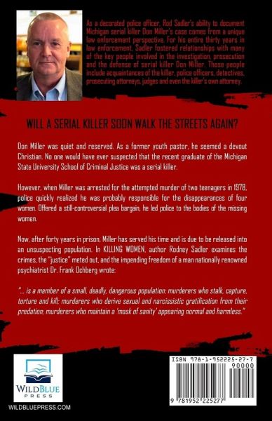 Will A Serial Killer Soon Walk The Streets Again? Don Miller was quiet and reserved. As a former youth pastor, he seemed a devout Christian. No one would have ever suspected that the recent graduate of the Michigan State University School of Criminal Justice was a serial killer. However, when Miller was arrested for the attempted murder of two teenagers in 1978, police quickly realized he was probably responsible for the disappearances of four women. Offered a still-controversial plea bargain, he led police to the bodies of the missing women. Now, after forty years in prison, Miller has served his time and is due to be released into an unsuspecting population. In KILLING WOMEN, author Rodney Sadler examines the crimes, the "justice" meted out, and the impending freedom of a man nationally renowned psychiatrist Dr. Frank Ochberg wrote: "... is a member of a small, deadly, dangerous population: murderers who stalk, capture, torture and kill; murderers who derive sexual and narcissistic gratification from their predation; murderers who maintain a 'mask of sanity' appearing normal and harmless."
