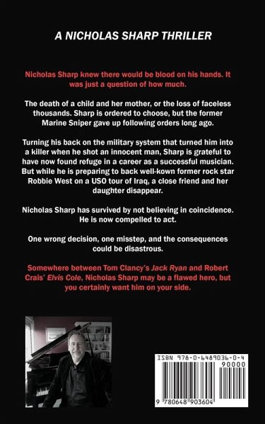 Nicholas Sharp is a killer musician... literally! Turning his back on the military system that turned him into a murderer when he shot an innocent man, Sharp is grateful to have found refuge in a career as a successful musician. But while he is preparing to back well-known former rock star Robbie West on a USO tour of Iraq, a close friend and her daughter disappear. In a deadly game of cat and mouse across three continents, Sharp discovers there's more at stake than his own life and those close to him. As relentless shadows from his past chase him down, he faces a brutal choice. Kill or be killed. Somewhere between Lee Child's Jack Reacher and Robert Crais' Elvis Cole, Nicholas Sharp may be a flawed human, but you certainly want him on your side.