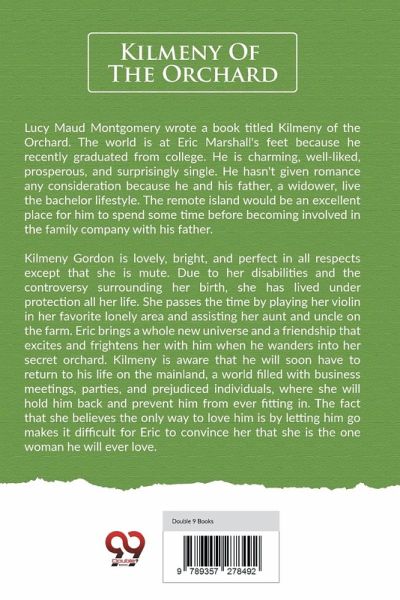 Lucy Maud Montgomery wrote a book titled Kilmeny of the Orchard. The world is at Eric Marshall's feet because he recently graduated from college. He is charming, well-liked, prosperous, and surprisingly single. He hasn't given romance any consideration because he and his father, a widower, live the bachelor lifestyle. The remote island would be an excellent place for him to spend some time before becoming involved in the family company with his father. Kilmeny Gordon is lovely, bright, and perfect in all respects except that she is mute. Due to her disabilities and the controversy surrounding her birth, she has lived under protection all her life. She passes the time by playing her violin in her favorite lonely area and assisting her aunt and uncle on the farm. Eric brings a whole new universe and a friendship that excites and frightens her with him when he wanders into her secret orchard. Kilmeny is aware that he will soon have to return to his life on the mainland, a world filled with business meetings, parties, and prejudiced individuals, where she will hold him back and prevent him from ever fitting in. The fact that she believes the only way to love him is by letting him go makes it difficult for Eric to convince her that she is the one woman he will ever love.