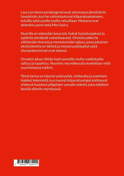 Laura ja hänen ponijenginsä ovat astumassa jännittäviin haasteisiin, kun he valmistautuvat kilparatsastukseen, tutuilla sekä uusilla isoilla ratsuillaan. Mukana ovat tietenkin ponit sekä Meri koira. Nuorilla on edessään kova työ, tiukat harjoitusjaksot ja sydäntä ylentävät voitonhaaveet. Onnistuvatko he ylittämään itsensä ja menestymään lajissa, jossa jokainen yksityiskohta on tärkeä ja mestaruuskilpailut sekä olympiakarsinnat ovat edessä. Onneksi aikaa riittää myös poneille mutta vaelluksella sattuu ja tapahtuu. Nuorten neuvokkuutta koetellaan mitä suurimmassa määrin. Tämä tarina on täynnä ystävyyttä, rohkeutta ja unelmien todeksi tekemistä, kun nuoret kilparatsastajat kohtaavat yhdessä haasteet, ylläpitäen samalla sidettä, joka edelleen kestää elämän myrskyissä.