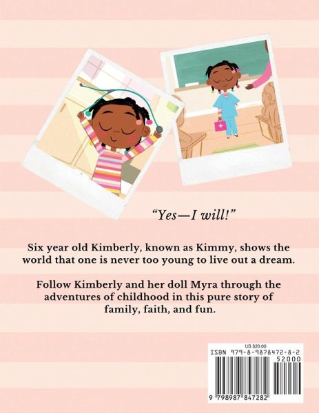 "Yes-I will!" Six year old Kimberly, known as Kimmy, shows the world that one is never too young to live out a dream. Follow Kimberly and her doll Myra through the adventures of childhood in this pure story of family, faith, and fun.