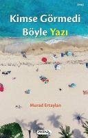 Bu kitabin ikikapagiarasinda, birbirindenbagimsiz gibi görünen23 öykü var. Yine de, hayatin, farkliyollarla sinadigikarakterlerdekendinizden parcalar bulmamaniz sürprizolur. Ertaylanin sihirlikalemi, canlandirdigi siradaninsanlariunutulmaz kiliyor.Aslaasikolmadiysaniz, bir umudunpesindebilmediginizmaceralara atilmadiysaniz, cocukkengörünmezolmayi düslemediyseniz, dibevurdugunuzdaaklinizdan bir an olsunintiharigecirmediyseniz, veya hiccaninizdancoksevdiginizbirinikaybetmediyseniz, o takdirde satir aralarina yüklenenanlamlaradokunamamariskinizvardemektir. Sansinizi bir baskayazardadenemenizdaha güvenliolabilir. Ancakyukarida bahsigecenörneklerdenbiri bile size tanidik geliyorsabukitababaliklama dalin. Yazinin hakkiniveren bir yazar, yazinizi güzelgecirtmeyivaadediyor; cünküKimse Görmedi BöyleYazi.