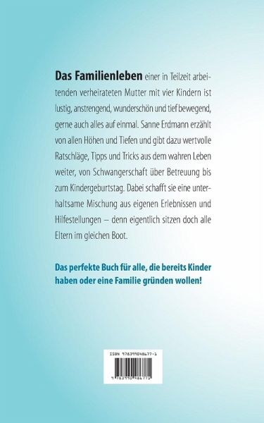 Das Familienleben einer in Teilzeit arbeitenden verheirateten Mutter mit vier Kindern ist lustig, anstrengend, wunderschön und tief bewegend, gerne auch alles auf einmal. Sanne Erdmann erzählt von allen Höhen und Tiefen und gibt dazu wertvolle Ratschläge, Tipps und Tricks aus dem wahren Leben weiter, von Schwangerschaft über Betreuung bis zum Kindergeburtstag. Dabei schafft sie eine unterhaltsame Mischung aus eigenen Erlebnissen und Hilfestellungen - denn eigentlich sitzen doch alle Eltern im gleichen Boot.