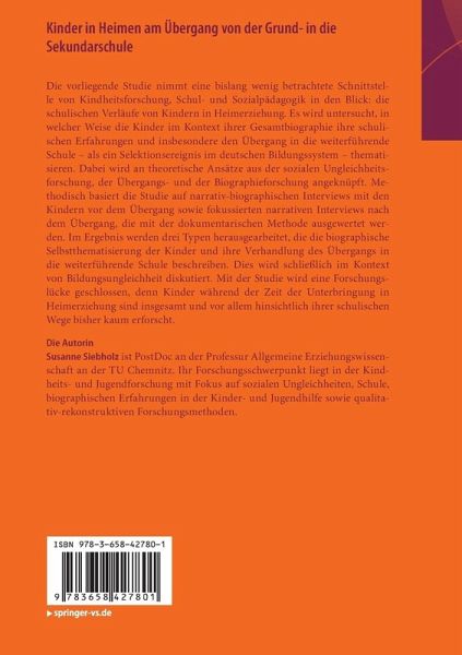 Die vorliegende Studie nimmt eine bislang wenig betrachtete Schnittstelle von Kindheitsforschung, Schul- und Sozialpädagogik in den Blick: die schulischen Verläufe von Kindern in Heimerziehung. Es wird untersucht, in welcher Weise die Kinder im Kontext ihrer Gesamtbiographie ihre schulischen Erfahrungen und insbesondere den Übergang in die weiterführende Schule - als ein Selektionsereignis im deutschen Bildungssystem - thematisieren. Dabei wird an theoretische Ansätze aus der sozialen Ungleichheitsforschung, der Übergangs- und der Biographieforschung angeknüpft. Methodisch basiert die Studie auf narrativ-biographischen Interviews mit den Kindern vor dem Übergang sowie fokussierten narrativen Interviews nach dem Übergang, die mit der dokumentarischen Methode ausgewertet werden. Im Ergebnis werden drei Typen herausgearbeitet, die die biographische Selbstthematisierung der Kinder und ihre Verhandlung des Übergangs in die weiterführende Schule beschreiben. Dies wird schließlich im Kontextvon Bildungsungleichheit diskutiert. Mit der Studie wird eine Forschungslücke geschlossen, denn Kinder während der Zeit der Unterbringung in Heimerziehung sind insgesamt und vor allem hinsichtlich ihrer schulischen Wege bisher kaum erforscht.