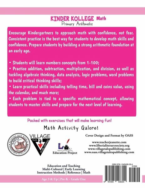 Encourage Kindergarteners to approach math with confidence, not fear. Consistent practice is the best way for students to develop math skills and confidence. Prepare students by building a strong arithmetic foundation at an early age. Students will learn numbers concepts from 1-100; Practice addition, subtraction, multiplication, and division, as well as tackling algebraic thinking, data analysis, logic problems, word problems to build critical thinking skills; Learn practical skills including telling time, bill and coins value, using the calendar, and much more; Each problem is tied to a specific mathematical concept, allowing students to master skills and prepare for the next level of learning.