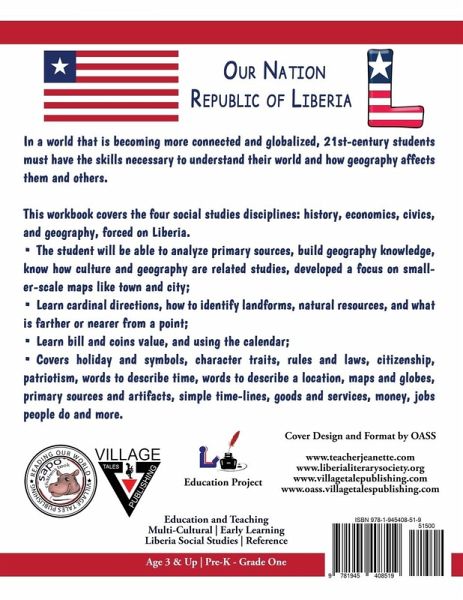 In a world that is becoming more connected and globalized, 21st-century students must have the skills necessary to understand their world and how geography affects them and others. This workbook covers the four social studies disciplines: history, economics, civics, and geography, forced on Liberia. The student will be able to analyze primary sources, build geography knowledge, know-how culture and geography are related studies, developed a focus on smaller-scale maps like town and city; Learn cardinal directions, how to identify landforms, natural resources, and what is farther or nearer from a point; Learn bill and coins value, and using the calendar; Covers holiday and symbols, character traits, rules and laws, citizenship, patriotism, words to describe time, words to describe a location, maps and globes, primary sources and artifacts, simple timelines, goods and services, money, jobs people do and more.