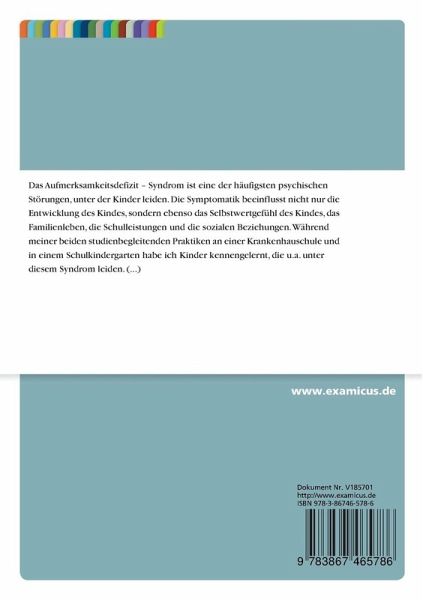 Diplomarbeit aus dem Jahr 2001 im Fachbereich Sozialpädagogik / Sozialarbeit, Note: 0, -, Sprache: Deutsch, Abstract: Das Aufmerksamkeitsdefizit Syndrom ist eine der häufigsten psychischen Störungen, unter der Kinder leiden.Die Symptomatik beeinflusst nicht nur die Entwicklung des Kindes, sondern ebenso das Selbstwertgefühl des Kindes, das Familienleben, die Schulleistungen und die sozialen Beziehungen.Während meiner beiden studienbegleitenden Praktiken an einer Krankenhauschule und in einem Schulkindergarten habe ich Kinder kennengelernt, die u.a. unter diesem Syndrom leiden.Ich erinnere mich dabei an meine erste Begegnung mit einem ADS Jungen der Kinderklinik Siegen:Ein Junge von neun Jahren war neu ins Krankenhaus eingeliefert worden, und montags kam er zum ersten Mal zu uns in die Krankenhausschule.Er zappelte herum, stand ständig von seinem Platz auf, redete dazwischen und konnte sich kaum auf die Aufgaben konzentrieren.Es vergingen einige Tage, bis er eines Morgens völlig verändert zum Unterricht erschien. Er war ruhiger, aufmerksamer, weniger impulsiv und konnte daher auch schneller arbeiten.Ursache für das veränderte Verhalten war die Gabe vonPsycho Stimulanzien der Amphetamingruppe.Aufgrund dieser Erfahrung nahm ich mir vor, mich eingehender mit diesem Thema auseinander zusetzen. Wie kann, so kam mir in den Sinn, Chemie derartige Wunder bewirken? Gibt es keine Alternativen zur Medikation?Um das herauszufinden, schien es mir unumgänglich, mir Basisdaten anzueignen, und ich hatte die Idee, ein ADS betroffenes, also verhaltensauffälliges Kind über einen längeren Zeitraum und in unterschiedlichen Situationen zu beobachten bzw. zu begleiten.Zur Vorbereitung nahm ich an zwei Seminaren zur ADS Problematik teil, um mich hinsichtlich des theoretischen Hintergrunds in Kenntnis zu setzen.In meiner Diplomarbeit gebe ich im ersten Teil einen Gesamtüberblick zum ADS Syndrom; im zweiten Teil schildere ich meine Beobachtungen und meine Erfahrungen bezüglich eines siebenjährigen Jungen aus einem Kindergarten.