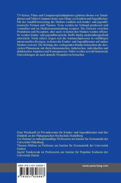 TV-Serien, Filme und Computerspieladaptionen gehören ebenso wie Smartphones und Tablet-Computer heute zum Alltag von Kindern und Jugendlichen. Mit der Ausdifferenzierung der Medien wandeln sich kinder- und jugendliterarische Formen und Themen. Texte werden im Verbund produziert und vermarktet und im Medienzusammenhang rezipiert. Die Grenzen zwischen Produktion und Rezeption, aber auch zwischen den Medien werden offener. So werden kinder- und jugendliterarische Stoffe häufig medienübergreifend entwickelt. Nicht zuletzt zeigen sich die Austauschprozesse in vielfältigen intertextuellen Bezügen, in denen die Kinder- und Jugendliteratur auf andere Medien verweist. Die Beiträge des vorliegenden Bandes beleuchten die skizzierten Phänomene mit ihren ökonomischen, ästhetischen, individuellen und didaktischen Aspekten und Konsequenzen. Dabei werden sowohl historische Entwicklungen als auch aktuelle Perspektiven betrachtet.