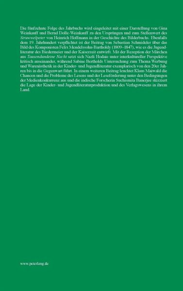 Die fünfzehnte Folge des Jahrbuchs wird eingeleitet mit einer Darstellung von Gina Weinkauff und Bernd Dolle-Weinkauff zu den Ursprüngen und zum Stellenwert des Struwwelpeter von Heinrich Hoffmann in der Geschichte des Bilderbuchs. Ebenfalls dem 19. Jahrhundert verpflichtet ist der Beitrag von Sebastian Schmideler über das Bild des Komponisten Felix Mendelssohn-Bartholdy (1809-1847), wie es die Jugendliteratur des Biedermeier und der Kaiserzeit entwirft. Mit der Rezeption der Märchen aus Tausendundeine Nacht setzt sich Nazli Hodaie unter interkultureller Perspektive kritisch auseinander, während Sabine Bertholds Untersuchung zum Thema Werbung und Warenästhetik in der Kinder- und Jugendliteratur exemplarisch von den 20er Jahren bis in die Gegenwart führt. In einem weiteren Beitrag leuchtet Klaus Maiwald die Chancen und die Probleme des Lesens und der Leseförderung unter den Bedingungen der Medienkonkurrenz aus und die indische Forscherin Suchismita Banerjee skizziert die Lage der Kinder- und Jugendliteraturproduktion und des Verlagswesens in ihrem Land.
