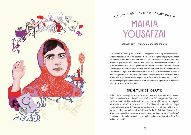Kinder sind nicht nur unsere Zukunft, viel öfter als gedacht bewirken sie auch große Veränderungen in der Gegenwart. Mutige und entschlossene junge Menschen mit großen Idealen und Kinderträumen, die aus unserem Planeten einen besseren und lebenswerteren Ort gemacht haben, davon handelt dieses Buch. Das Sachbuch für Kinder stellt die Portraits von 17 Kinder und Jugendlichen vor, die Mut machen und inspirieren, selbst aktiv zu werden. Von Louis Braille über Muzoon Almellehan bis zu Greta Thunberg.