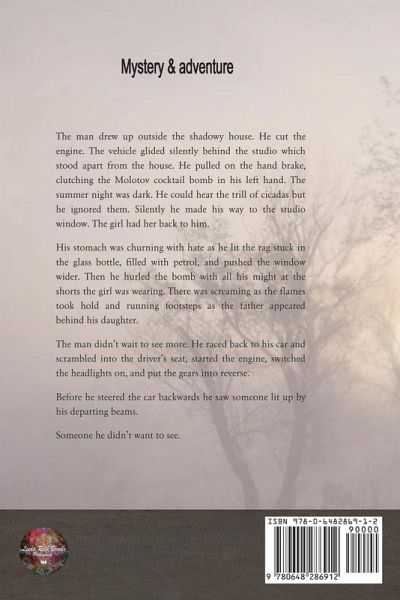 The man drew up outside the shadowy house. He cut the engine. The vehicle glided silently behind the studio which stood apart from the house. He pulled on the hand brake, clutching the Molotov cocktail bomb in his left hand. The summer night was dark. He could hear the trill of cicadas but he ignored them. Silently he made his way to the studio window. The girl had her back to him. His stomach was churning with hate as he lit the rag stuck in the glass bottle, filled with petrol, and pushed the window wider. Then he hurled the bomb with all his might at the shorts the girl was wearing. There was screaming as the flames took hold and running footsteps as the father appeared behind his daughter. The man didn’t wait to see more. He raced back to his car and scrambled into the driver’s seat, started the engine, switched the headlights on, and put the gears into reverse. Before he steered the car backwards he saw someone lit up by his departing beams. Someone he didn’t want to see.