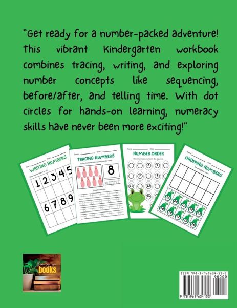 Kindergarten Numbers Workbook Embark on an exciting journey into the world of numbers with our captivating Kindergarten Numbers Workbook! Designed specifically for little learners, this workbook is a perfect companion for their early math education. Filled with vibrant colors, adorable characters, and interactive activities, this workbook creates a delightful learning environment that engages children from start to finish. Each page is carefully crafted to foster a love for numbers and develop essential numeracy skills. Let the adventure begin as your child dives into tracing numbers and learns to write them with confidence. Through guided exercises, they will gain mastery of forming each digit, ensuring a strong foundation for future mathematical success. But the exploration doesn't stop there! Our workbook takes young learners on an exciting journey through number orders, discovering patterns, and exploring the concepts of "before," "between," and "after." These exercises develop critical thinking skills and strengthen number recognition, enabling children to navigate the number line with ease. Telling time is another thrilling aspect of this workbook. With engaging illustrations and interactive clocks, your child will learn to read and understand analog clocks, grasping the concept of hours and minutes in a fun and interactive way. They'll feel like little time travelers, exploring the magical world of telling time! And to make learning even more playful, we've included dot circles that transform numbers into hands-on experiences. Children can count and place colorful dots, reinforcing numerical concepts and enhancing their understanding of quantity and number relationships. Whether used at home or in the classroom, our Kindergarten Numbers Workbook is a treasure trove of mathematical exploration, sparking curiosity and building confidence in young learners. Join us on this educational adventure and watch your child's numerical skills soar to new heights!