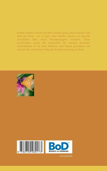 Kinder können Freude machen, können ganz schön stressen und sind das Beste, was es gibt. Und Mütter können so manche Geschichte über ihren Wonneproppen erzählen. Diese Geschichten waren die Inspiration für meinen aktuellen Gedichtband. Er ist allen Müttern und Vätern gewidmet, die sich auf den mühsamen Weg der Kindererziehung machen.