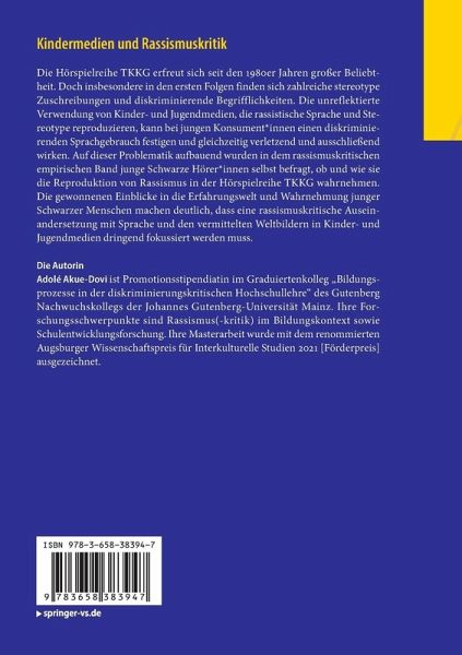 Die Hörspielreihe TKKG erfreut sich seit den 1980er Jahren großer Beliebtheit. Doch insbesondere in den ersten Folgen finden sich zahlreiche stereotype Zuschreibungen und diskriminierende Begrifflichkeiten. Die unreflektierte Verwendung von Kinder- und Jugendmedien, die rassistische Sprache und Stereotype reproduzieren, kann bei jungen Konsument_innen einen diskriminierenden Sprachgebrauch festigen und gleichzeitig verletzend und ausschließend wirken. Auf dieser Problematik aufbauend wurden in dem rassismuskritischen empirischen Band junge Schwarze Hörer_innen selbst befragt, ob und wie sie die Reproduktion von Rassismus in der Hörspielreihe TKKG wahrnehmen. Die gewonnenen Einblicke in die Erfahrungswelt und Wahrnehmung junger Schwarzer Menschen machen deutlich, dass eine rassismuskritische Auseinandersetzung mit Sprache und den vermittelten Weltbildern in Kinder- und Jugendmedien dringend fokussiert werden muss.