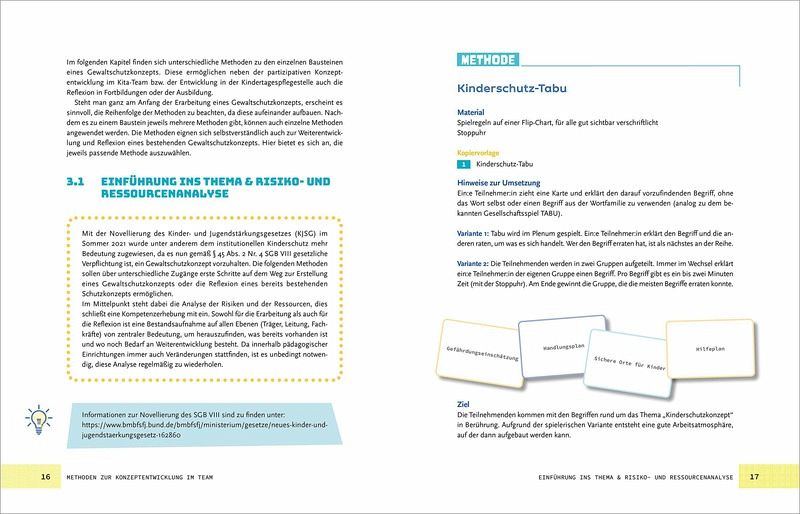 Kinderschutz ist nicht nur gesetzlicher Auftrag, sondern auch pädagogischer Anspruch. Diese praxisnahe Methodensammlung unterstützt Fachkräfte dabei, sich im Team mit dem Thema auseinanderzusetzen, Wissen zu vertiefen und gemeinsam ein tragfähiges Gewaltschutzkonzept zu entwickeln. Mit vielfältigen Impulsen zur Reflexion, Wissensvermittlung und zum kollegialen Austausch bietet das Buch eine wertvolle Grundlage für die Erstellung und Weiterentwicklung von Kinderschutzkonzepten in Kita und Kindertagespflege.