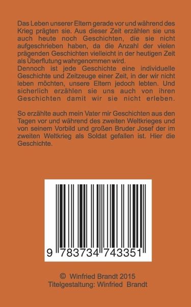 Das Leben unserer Eltern gerade vor und während dem Krieg prägten sie. Aus dieser Zeit erzählen sie uns auch heute noch Geschichten, die sie nicht aufgeschrieben haben, da die Anzahl der vielen prägenden Geschichten vielleicht in der heutigen Zeit als Überflutung wahrgenommen wird. Dennoch ist jede Geschichte eine individuelle Geschichte und Zeitzeuge einer Zeit, in der wir nicht leben möchten, unsere Eltern jedoch lebten. Und sicherlich erzählen sie uns auch von ihren Geschichten damit wir sie nicht erleben.So erzählte auch mein Vater mir Geschichten aus den Tagen vor und während des zweiten Weltkrieges und von seinem Vorbild und großen Bruder Josef der im zweiten Weltkrieg als Soldat gefallen ist. Hier die Geschichte.