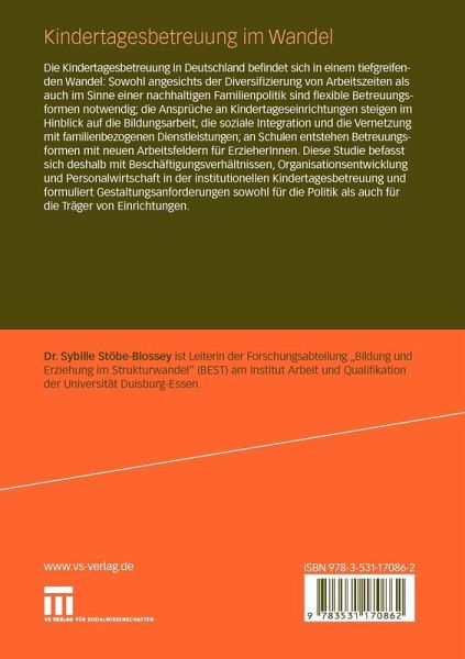 Die Kindertagesbetreuung in Deutschland befindet sich in einem tiefgreifenden Wandel: Sowohl angesichts der Diversifizierung von Arbeitszeiten als auch im Sinne einer nachhaltigen Familienpolitik sind flexible Betreuungsformen notwendig; die Ansprüche an Kindertageseinrichtungen steigen im Hinblick auf die Bildungsarbeit, die soziale Integration und die Vernetzung mit familienbezogenen Dienstleistungen; an Schulen entstehen Betreuungsformen mit neuen Arbeitsfeldern für Erzieher/inne/n. Die vorliegende Studie befasst sich deshalb mit Beschäftigungsverhältnissen, Organisationsentwicklung und Personalwirtschaft in der institutionellen Kindertagesbetreuung und formuliert Gestaltungsanforderungen sowohl für die Politik als auch für die Träger von Einrichtungen.