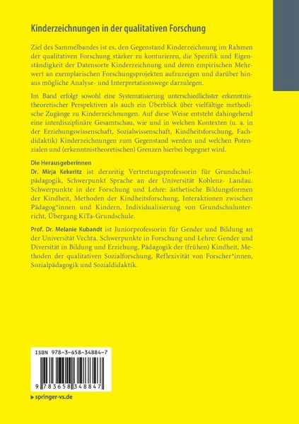 Herausforderungen und Grenzen bei der Analyse von Kinderzeichnungen. Ein Problemaufriss aus kunsthistorischer und bildmethodologischer Perspektive..- Nele und das Krokodil. Die hermeneutische Bildanalyse als Methode zur Erforschung kindlichen Zeichnens.- Visuelle Grounded Theory als Analyseverfahren von Kinderzeichnungen in der ethnografischen Forschung - Potentiale für die Annäherung an die Perspektiven von Kindern.- Raumbilder interpretieren. Visuelle Segmentanalyse von Kinderzeichnungen..- Kinderzeichnungsanalyse als Chance für die Erforschung von Bildungsprozessen: Ein objektiv-hermeneutischer Zugang zu Kinderzeichnungen.- Kinder als Künstler_Innen - Wesentliche Aspekte ausdruckshaft-schöpferischer Aneignung der Welt und des Selbst am Beispiel von Kinderzeichnungen.- Kinderzeichnungen als Spuren in die Welt von Kindern. Erkenntnistheoretische und methodische Zugänge zu Kinderzeichnungen.- Zeichenanlässe in der Kinderzeichnungsforschung als forschungsmethodische und didaktische Herausforderung.- Kinderzeichnungsforschung in der Kunstpädagogik - Das hermeneutisch-mehrperspektivische Interpretationsmodell.- Kinderzeichnungen als Analyseinstrument von Lernvoraussetzungen im Sachunterricht - Chancen und Herausforderungen.- Das Dispositiv digital basierter Kinderzeichnungen im Kontext videographischer Beobachtungen und Interpretationen.- Kinderzeichnungen als mehrschichtige Visualitäten - methodologische Reflexionen.- Kunstvermittlung in Sibirien - Die dokumentarische Bildanalyse als Instrument zur Rekonstruktion hybrider Kulturen.- Der Einsatz von Kinderzeichnungen zur Analyse von Veränderungsprozessen in der Kinderpsychotherapie: empirische Beispiele.