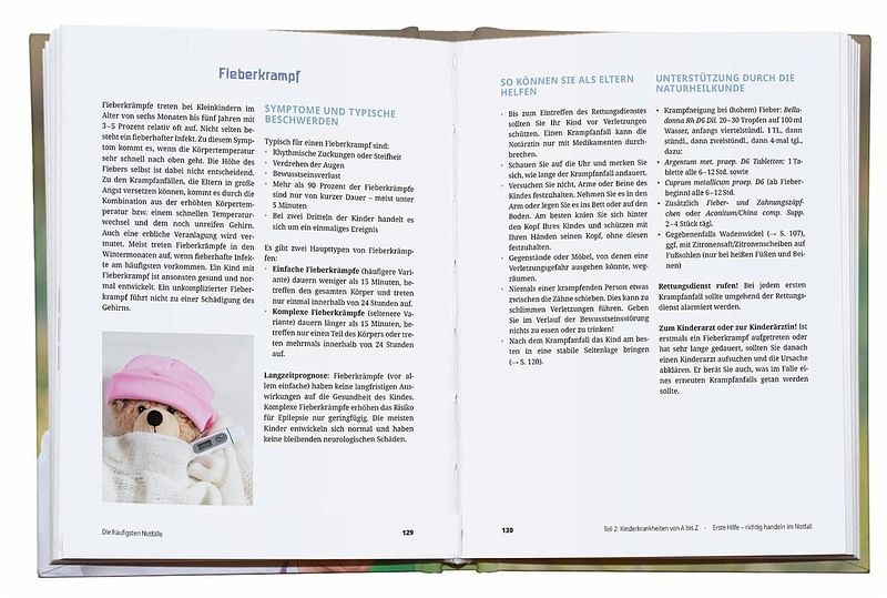 Jedes Krankheitsbild wird mit Symptomen, der Krankheitsentstehung, fachärztlicher Therapie und Empfehlungen zur Selbsthilfe für Eltern erläutert: