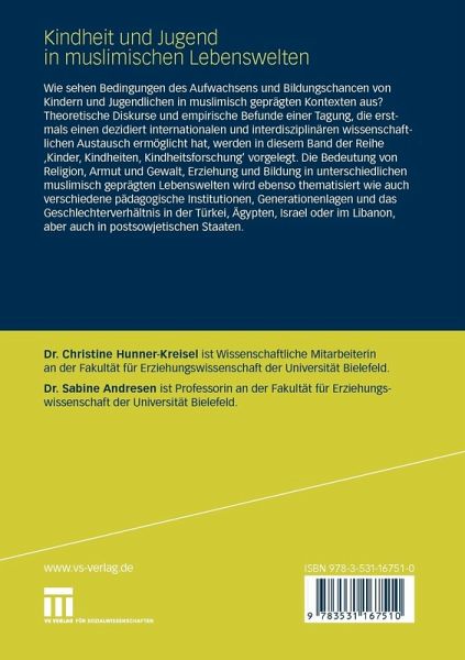 erstmals einen dezidiert internationalen und interdisziplinären wissenschaftlichen Austausch ermöglicht hat, werden in diesem Band der Reihe 'Kinder, Kindheiten, Kindheitsforschung' vorgelegt. Die Bedeutung von Religion, Armut und Gewalt, Erziehung und Bildung in unterschiedlichen muslimisch geprägten Lebenswelten wird ebenso thematisiert wie auch verschiedene pädagogische Institutionen, Generationenlagen und das Geschlechterverhältnis in der Türkei, Ägypten, Israel oder im Libanon, aber auch in postsowjetischen Staaten.