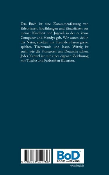 Das Buch ist eine Zusammenfassung von Erlebnissen, Erzählungen und Eindrücken aus meiner Kindheit und Jugend, in der es keine Computer und Handys gab. Wir waren viel in der Natur, spielten mit Freunden, lasen gerne, spielten Tischtennis und lasen. Witzig ist auch, wie die Franzosen uns Deutsche sahen. Jedes Kapitel ist mit einer eigenen Zeichnung mit Tusche und Farbstiften illustriert.