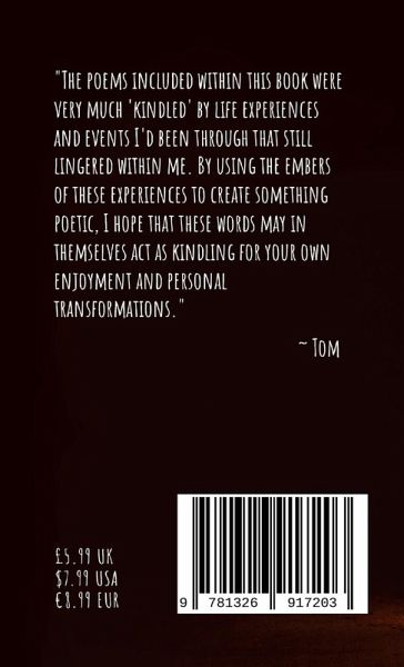 The poems included within this book were very much 'kindled' by life experiences and events I'd been through that still lingered within me. By using the embers of these experiences to create something poetic, I hope that these words may in themselves act as kindling for your own enjoyment and personal transformations.
