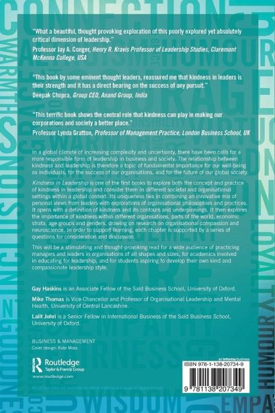 "This could be the book which changes global perception and appreciation of kindness in leadership, bringing it to the fore in the considered development of our organisations and societies. The authors' panoramic exploration of the many manifestations and impacts of kindness highlights the immense value of this inexhaustible, infinitely sharable, inner resource. The book is a true gift to the literature on Leadership and a convincing exposition of how we would all benefit from making kindness more visible in the world."