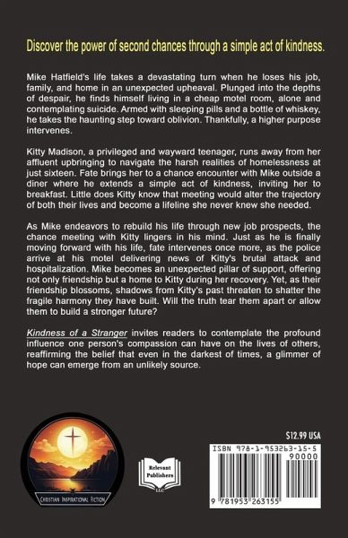 Discover the power of second chances through a simple act of kindness. Mike Hatfield's life takes a devastating turn when he loses his job, family, and home in an unexpected upheaval. Plunged into the depths of despair, he finds himself living in a cheap motel room, alone and contemplating suicide. Armed with sleeping pills and a bottle of whiskey, he takes the haunting step toward oblivion. Thankfully, a higher purpose intervenes. Kitty Madison, a privileged and wayward teenager, runs away from her affluent upbringing to navigate the harsh realities of homelessness at just sixteen. Fate brings her to a chance encounter with Mike outside a diner where he extends a simple act of kindness, inviting her to breakfast. Little does Kitty know that meeting would alter the trajectory of both their lives and become a lifeline she never knew she needed. As Mike endeavors to rebuild his life through new job prospects, the chance meeting with Kitty lingers in his mind. Just as he is finally moving forward with his life, fate intervenes once more, as the police arrive at his motel delivering news of Kitty's brutal attack and hospitalization. Mike becomes an unexpected pillar of support, offering not only friendship but a home to Kitty during her recovery. Yet, as their friendship blossoms, shadows from Kitty's past threaten to shatter the fragile harmony they have built. Will the truth tear them apart or allow them to build a stronger future? Kindness of a Stranger invites readers to contemplate the profound influence one person's compassion can have on the lives of others, reaffirming the belief that even in the darkest of times, a glimmer of hope can emerge from an unlikely source.
