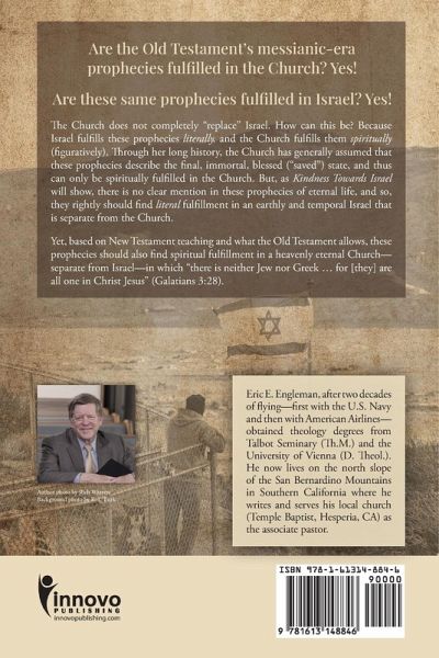 -ABOUT THE BOOK: Are the Old Testament's messianic-era prophecies fulfilled in the Church? Yes! Are these same prophecies fulfilled in Israel? Yes! The Church does not completely "replace" Israel. How can this be? Because Israel fulfills these prophecies literally, and the Church fulfills them spiritually (figuratively). Throughout her long history, the Church has generally assumed that these prophecies describe the final, immortal, blessed ("saved") state, and thus can only be spiritually fulfilled in the Church. But, as Kindness Towards Israel will show, there is no clear mention in these prophecies of eternal life, and so, they rightly should find literal fulfillment in an earthly and temporal Israel that is separate from the Church. Yet, based on New Testament teaching and what the Old Testament allows, these prophecies should also find spiritual fulfillment in a heavenly, eternal Church that is separate from Israel yet consists of both Jews and Gentiles. God will fulfill his promises made to the Jews as well as his promises made to the Church-in which "there is neither Jew nor Greek ... for [they] are all one in Christ Jesus"(Galatians 3:28). -ABOUT THE AUTHOR: After two decades of flying-first with the U.S. Navy and then with American Airlines-Eric E. Engleman obtained theology degrees from Talbot Seminary(Th.M.) and the University of Vienna (D. Theol.). He now lives on the north slope of the San Bernardino Mountains in Southern California where he writes and serves his local church (Temple Baptist, Hesperia, CA) as the associate pastor. -ABOUT THE PUBLISHER: Innovo Publishing LLC is a Christ-centered publisher located near Memphis, TN. Since 2008, Innovo has been publishing quality books, eBooks, audiobooks, music, screenplays, and online and physical curricula that support the Great Commission, equip believers,and help create a positive Christian worldview. Innovo's capabilities and global reach provide Christian authors, artists,and ministries access to the world for Christ. To learn more about Innovo Publishing,visit our website at innovopublishing.com. To connect with other Christian creatives and to learn best practices for creating, publishing, marketing, and selling Christian titles,visit the Christian Publishing Portal at cpportal.com.