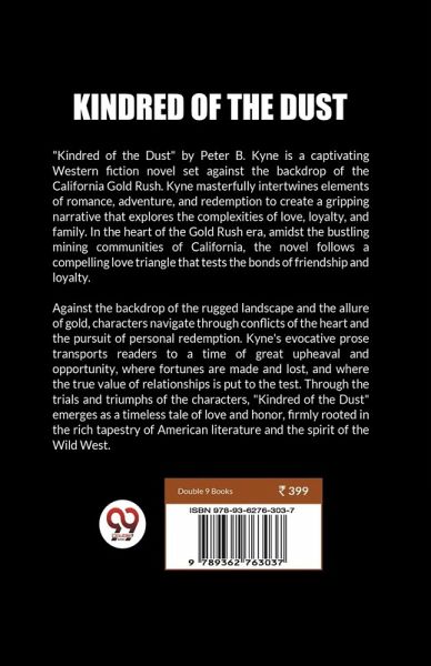 "Kindred of the Dust" by Peter B. Kyne is a captivating Western fiction novel set against the backdrop of the California Gold Rush. Kyne masterfully intertwines elements of romance, adventure, and redemption to create a gripping narrative that explores the complexities of love, loyalty, and family. In the heart of the Gold Rush era, amidst the bustling mining communities of California, the novel follows a compelling love triangle that tests the bonds of friendship and loyalty. Against the backdrop of the rugged landscape and the allure of gold, characters navigate through conflicts of the heart and the pursuit of personal redemption. Kyne's evocative prose transports readers to a time of great upheaval and opportunity, where fortunes are made and lost, and where the true value of relationships is put to the test. Through the trials and triumphs of the characters, "Kindred of the Dust" emerges as a timeless tale of love and honor, firmly rooted in the rich tapestry of American literature and the spirit of the Wild West.