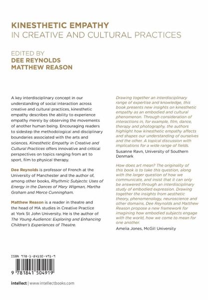 A key interdisciplinary concept in our understanding of social interaction across creative and cultural practices, kinesthetic empathy describes the ability to experience empathy merely by observing the movements of another human being. Encouraging readers to sidestep the methodological and disciplinary boundaries associated with the arts and sciences, "Kinesthetic Empathy in Creative and Cultural Practices" offers innovative and critical perspectives on topics ranging from art to sport, film to physical therapy.