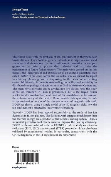 The main physical results can be divided into two blocks. First, the study of 3D ion transport in ITER is presented. ITER is the largest fusion reactor (under construction) and most of the simulations so far assume the axis-symmetry of the device. Unfortunately, this symmetry is only an approximation because of the discrete number of magnetic coils used. ISDEP has shown, using a simple model of the 3D magnetic field, how the ion confinement is affected by this symmetry breaking.