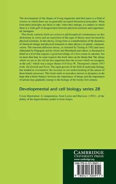Development of the shapes of living organisms and their parts is a field of science in which there are no generally accepted theoretical principles. What form these principles are likely to take, when they emerge, is a subject in which there is a wide gulf of disagreement between physical scientists and experimental biologists. This book contains both an extensive philosophical commentary on this dichotomy in views and an exposition of the type of theory most favoured by physical scientists. In this theory living form is a manifestation of the dynamics of chemical change and physical transport or other physics of spatial communication. The reaction-diffusion theory, as initiated by Turing in 1952 and since elaborated by Prigogine and by Gierer and Meinhardt among others, is discussed in detail at a level that requires a good knowledge of a first course in calculus, but no more than that.