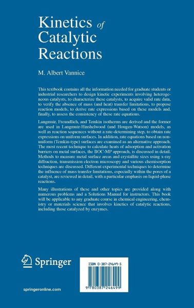 Definitions and Concepts.- Catalyst Characterization.- Acquisition and Evaluation of Reaction Rate Data.- Adsorption and Desorption Processes.- Kinetic Data Analysis and Evaluation of Model Parameters for Uniform (Ideal) Surfaces.- Modeling Reactions on Uniform (Ideal) Surfaces.- Modeling Reactions on Nonuniform (Nonideal) Surfaces.- Kinetics of Enzyme-Catalyzed Reactions.