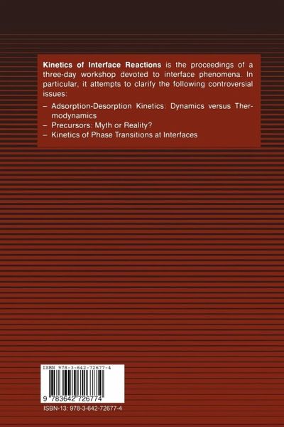 I Adsorption-Desorption Kinetics: Dynamics versus Thermodynamics.- Equilibrium and Non-equilibrium Effects in Adsorption-Desorption Kinetics: Influences of Interaction Dynamics, Reaction Kinetics, and Statistical Mechanics of the Adlayer.- Kinetics and Dynamics of Gas-Surface Interaction: The Principles of Detailed Balance and Unitarity.- Energy Distributions of Thermally Desorbed Molecules: NO on AG(111) and Pt(111)..- Nonequilibrium Desorption of Physisorbed Atoms.- Studies of Surface Kinetics Using Second-Harmonic Generation.- Direct Measurements of Surface Kinetics by Time-Resolved Electron Energy Loss Spectroscopy.- Isotopic Effects in the Adsorption and Desorption of Hydrogen by Ni (111).- Adsorption-Desorption Kinetics: Some Comments.- II Precursors: Myth or Reality?.- Precursor Intermediates and Precursor-Mediated Surface Reactions: General Concepts, Direct Observations and Indirect Manifestations.- Precursor States, Myth or Reality: A Perspective from Molecular Beam Studies.- Molecular Beam Studies of Dissociative Chemisorption on W(110).- The Role of Precursors in Molecular Chemisorption and Thermal Desorption.- Adsorption and Reaction of CO2 on Metal Surfaces. Detection of an Intrinsic Precursor to Dissociation.- Influence of Electronic and Geometric Structure on Desorption Kinetics of Isoelectronic Polar Molecules: NH3 and H2O.- A Molecular Orbital Analysis of Chemisorption Precursor States.- Thermal and Non-thermal Activation of Si(100) Surface Nitridation.- Precursor Mediated and Direct Adsorption: Two Channels Leading to Chemisorption.- III Kinetics of Phase Transitions at Surfaces.- Experiments on Kinetic Effects at Phase Transitions.- Kinetics of Adatom Ordering on Surfaces.- Kinetics of Domain Growth in a Model of O/Pd(110).- The Influence of Hydrogenon the Infrared Spectrum of N2 Chemisorbed on the Ni(110) Surface.- The Reaction of Carbon Monoxide with Chemisorbed Oxygen on Pd(110): An Example of a Structure-Sensitive Reaction.- Conformal Invariance, Multiple Scattering and the Au(110) (1×2) to (1×1) Phase Transition.- Self-sustained Kinetic Oscillations in the Catalytic CO Oxidation on Platinum.- Kinetics of Surface Phase Transitions: Some Comments.- Index of Contributors.