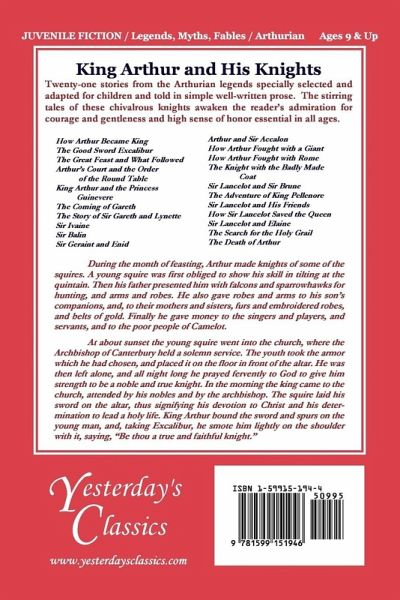 Twenty-one stories from the Arthurian legends specially selected and adapted for children and told in simple well-written prose. The stirring tales of these chivalrous knights awaken the reader's admiration for courage and gentleness and high sense of honor essential in all ages. Suitable for ages 9 and up.