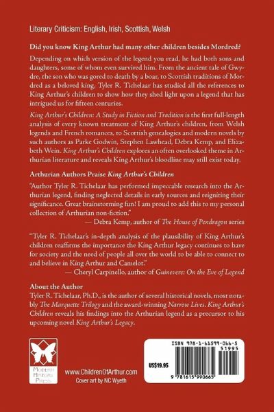 Did you know King Arthur had many other children besides Mordred? Depending on which version of the legend you read, he had both sons and daughters, some of whom even survived him. From the ancient tale of Gwydre, the son who was gored to death by a boar, to Scottish traditions of Mordred as a beloved king, Tyler R. Tichelaar has studied all the references to King Arthur's children to show how they shed light upon a legend that has intrigued us for fifteen centuries. King Arthur's Children: A Study in Fiction and Tradition is the first full-length analysis of every known treatment of King Arthur's children, from Welsh legends and French romances, to Scottish genealogies and modern novels by such authors as Parke Godwin, Stephen Lawhead, Debra Kemp, and Elizabeth Wein. King Arthur's Children explores an often overlooked theme in Arthurian literature and reveals King Arthur's bloodline may still exist today. Arthurian Authors Praise "King Arthur's Children" "Author Tyler R. Tichelaar has performed impeccable research into the Arthurian legend, fi nding neglected details in early sources and reigniting their significance. Great brainstorming fun! I am proud to add this to my personal collection of Arthurian non-fiction." --Debra Kemp, author of The House of Pendragon series "Tyler R. Tichelaar's in-depth analysis of the plausibility of King Arthur's children reaffirms the importance the King Arthur legacy continues to have for society and the need of people all over the world to be able to connect to and believe in King Arthur and Camelot." --Cheryl Carpinello, author of Guinevere: On the Eve of Legend About the Author Tyler R. Tichelaar, Ph.D., is the author of several historical novels, most notably The Marquette Trilogy and the award-winning Narrow Lives. King Arthur's Children reveals his findings into the Arthurian legend as a precursor to his upcoming novel King Arthur's Legacy. Learn more at www.ChildrenOfArthur.com from the Reflections of Camelot Series at Modern History Press www.ModernHistoryPress.com