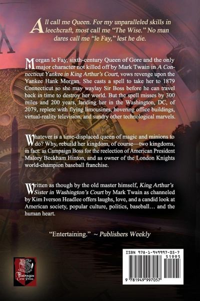 How sick are you of US politics? Do you believe the world is doomed regardless of who has claimed the Oval Office throne—er, chair? Refresh your spirit and allay your fears by laughing along with what Mark Twain might have written about today’s political falderal. "Solidly entertaining." ~Publishers Weekly WINNER 2016 IBPA Benjamin Franklin Gold Medal for Science Fiction & Fantasy. Morgan le Fay, sixth-century Queen of Gore and the only major character not killed off by Mark Twain in A Connecticut Yankee in King Arthur’s Court, vows revenge upon the Yankee Hank Morgan. She casts a spell to take her to 1879 Connecticut so she may waylay Sir Boss before he can travel back in time to destroy her world. But the spell misses by 300 miles and 200 years, landing her in the Washington, DC, of 2079, replete with flying limousines, hovering office buildings, virtual-reality television, and sundry other technological marvels. Whatever is a time-displaced queen of magic and minions to do? Why, rebuild her kingdom, of course—two kingdoms, in fact: as Campaign Boss for the reelection of American President Malory Beckham Hinton, and as owner of the London Knights world-champion baseball franchise. Written as though by the old master himself, King Arthur’s Sister in Washington’s Court by Mark Twain as channeled by Kim Iverson Headlee offers laughs, love, and a candid look at American society, popular culture, politics, baseball… and the human heart.