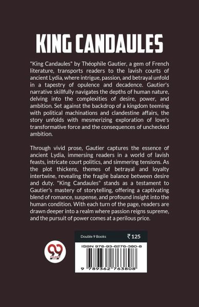 Th ophile Gautier, a master of French literature, presents his captivating tale "King Candaules" with unparalleled artistry and depth. In this masterpiece, Gautier weaves a rich tapestry of intrigue, passion, and betrayal set against the backdrop of ancient Lydia. Through vivid prose and meticulous attention to detail, he transports readers to a world of opulence and decadence, where the boundaries between desire and power blur. "King Candaules" stands as a testament to Gautier's skillful storytelling and his ability to explore the complexities of human nature with nuance and sophistication. As readers delve into the pages of this timeless work, they are swept away on a journey of discovery and introspection, confronted by the timeless themes of love, ambition, and the consequences of unchecked desire. Gautier's exploration of these themes resonates across centuries, offering insights that remain as relevant today as they were in the world of ancient Lydia. "King Candaules" is not merely a novel but a profound exploration of the human condition, penned by one of literature's most esteemed visionaries.