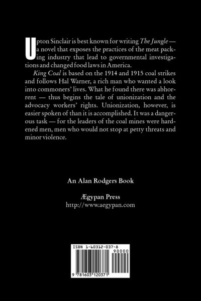 A fellow determined to find the truth for himself about conditions in the mines, runs away from home and adopts the alias "Joe Smith." After being turned away by one coal mine for fear of Hal being a union organizer, he gets a job in another coal mine operated by the General Fuel Company, or GFC. In the mines he befriends many of the workers and realizes their misery and exploitation at the hands of the bosses. What he found there was abhorrent -- thus begins the tale of unionization and the advocacy workers' rights. Unionization, however, is easier spoken of than it is accomplished. It was a dangerous task -- for the leaders of the coal mines were hardened men, men who would not stop at petty threats and minor violence. Upton Sinclair is best known for writing The Jungle -- a novel that exposes the practices of the meat packing industry that lead to governmental investigations and changed food laws in America.