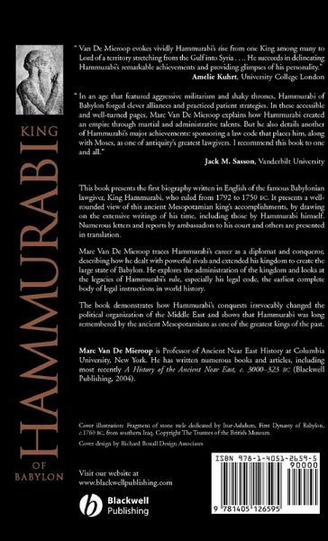 "Van De Mieroop evokes vividly Hammurabi's rise fromone King among many to Lord of a territory stretching from the Gulfinto Syria .... He succeeds in delineating Hammurabi'sremarkable achievements and providing glimpses of hispersonality." Amelie Kuhrt, University CollegeLondon