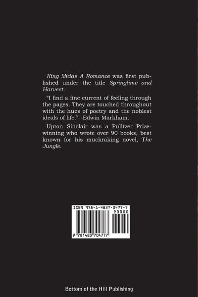 King Midas A Romance was first published under the title Springtime and Harvest. "I find a fine current of feeling through the pages. They are touched throughout with the hues of poetry and the noblest ideals of life."--Edwin Markham. Upton Sinclair was a Pulitzer Prize-winning who wrote over 90 books, best known for his muckraking novel, The Jungle.