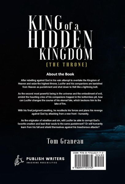 King of a Hidden Kingdom by Tom Graneau is a gripping tale of cosmic rebellion, spiritual warfare, and the eternal struggle between good and evil. The story centers on Lucifer, the once-glorious archangel who, in his pride and ambition, attempted to overthrow God and seize the throne of heaven. After his failed rebellion, Lucifer and his followers are cast out of heaven, plummeting to the depths of hell in a dramatic fall, symbolizing their eternal punishment. However, Lucifer, now the embodiment of evil, refuses to accept his fate. As the second most powerful being in the universe, he seeks a way to defy his final judgment and escape the lake of fire that awaits him. Surrounded by the haunting cries of his fallen companions, Lucifer's hatred and desire for revenge grow ever stronger. Determined to corrupt God's most cherished creation, humanity, Lucifer devises a cunning plan to lead human souls astray. He targets humanity, intending to sow sin and rebellion within them, hoping to drag them down to hell with him. Lucifer's plan is not just an act of vengeance against God but a desperate attempt to change the course of his eternal fate. The narrative explores the spiritual battle that ensues as Lucifer unleashes his forces upon the world. Humanity, caught in the crossfire, faces temptations and challenges that test their faith, morality, and resilience. As the originator of sin, Lucifer's influence is pervasive, and the story delves into the struggles of individuals and societies against the dark forces seeking to corrupt them. "King of a Hidden Kingdom" is a thought-provoking exploration of the nature of sin, redemption, and the human soul's capacity for both darkness and light. Will Lucifer succeed in his quest to lead humanity into the same abyss that ensnared him? Or will humanity learn from his fall and resist his treacherous attacks, finding salvation and redemption in the face of overwhelming evil?