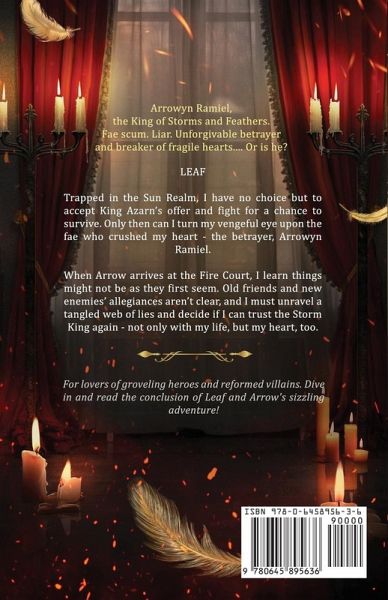 Arrowyn Ramiel, the King of Storms and Feathers. Fae scum. Liar. Unforgivable betrayer and breaker of fragile hearts.... Or is he? LEAF: Trapped in the Sun Realm, I have no choice but to accept King Azarn's offer and fight for a chance to survive. Only then can I turn my vengeful eye upon the fae who crushed my heart-the betrayer, Arrowyn Ramiel. When Arrow arrives at the Fire Court, I learn things might not be as they first seem. Old friends and new enemies' allegiances aren't clear, and I must unravel a tangled web of lies and decide if I can trust the Storm King again-not only with my life, but my heart, too. For lovers of groveling heroes and reformed villains. Dive in and read the conclusion of Leaf and Arrow's sizzling adventure!