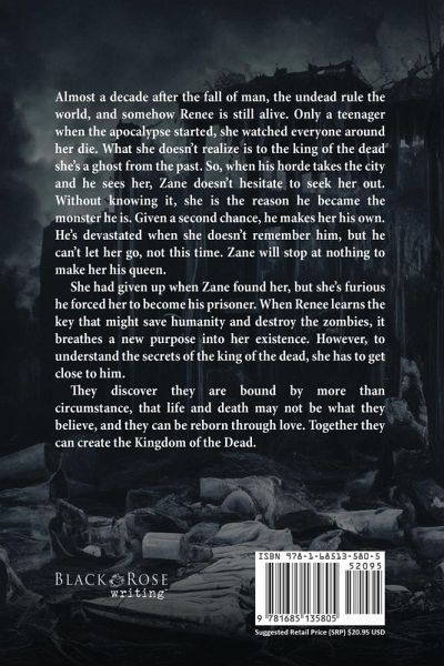 "A fresh take on the zombie romance, leaves you hungry for more." -Torri Heat Almost a decade after the fall of man, the undead rule the world, and somehow Renee is still alive. Only a teenager when the apocalypse started, she watched everyone around her die. What she doesn't realize is to the king of the dead she's a ghost from the past. So, when his horde takes the city and he sees her, Zane doesn't hesitate to seek her out. Without knowing it, she is the reason he became the monster he is. Given a second chance, he makes her his own. He's devastated when she doesn't remember him, but he can't let her go, not this time. Zane will stop at nothing to make her his queen. She had given up when Zane found her, but she's furious he forced her to become his prisoner. When Renee learns the key that might save humanity and destroy the zombies, it breathes a new purpose into her existence. However, to understand the secrets of the king of the dead, she has to get close to him. They discover they are bound by more than circumstance, that life and death may not be what they believe, and they can be reborn through love. Together they can create the Kingdom of the Dead.