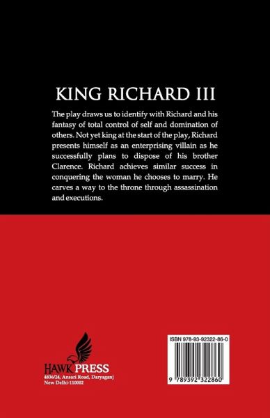 The play draws us to identify with Richard and his fantasy of total control of self and domination of others. Not yet king at the start of the play, Richard presents himself as an enterprising villain as he successfully plans to dispose of his brother Clarence. Richard achieves similar success in conquering the woman he chooses to marry. He carves a way to the throne through assassination and executions.